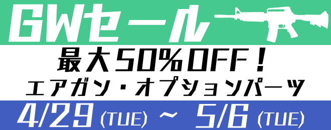 ゴールデンウィーク期間中は、銃やオプションパーツがお買い得に!