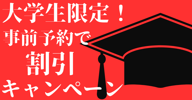 ※当日、学生証をお持ちで無い方はキャンペーンの適応は出来ません。