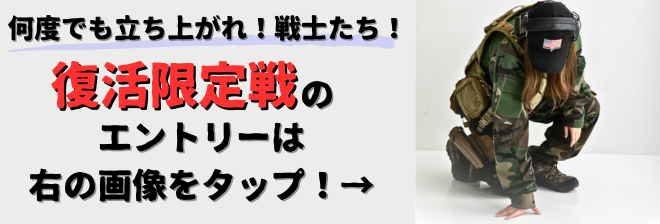 過去にチームシャッフル戦やフラッグ戦限定dayなどを行ってきた当店ですが、今回は復活戦オンリーのサバゲーになります!
