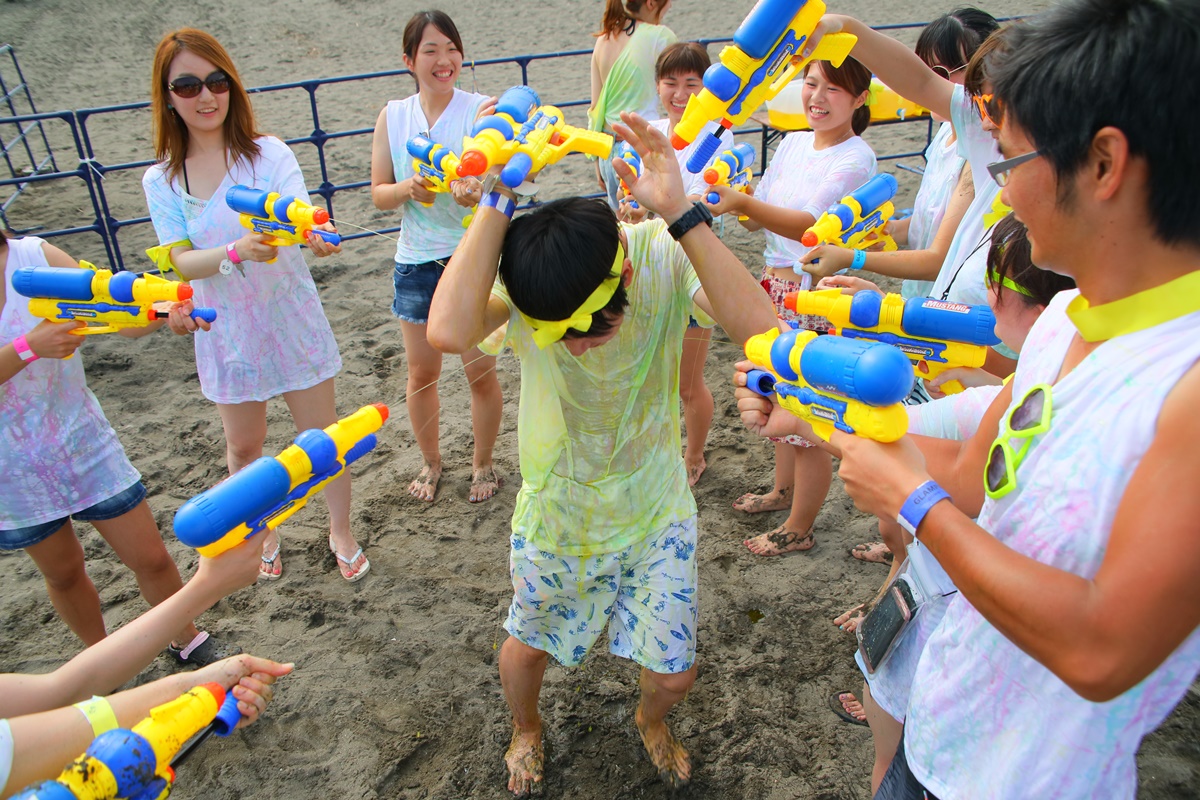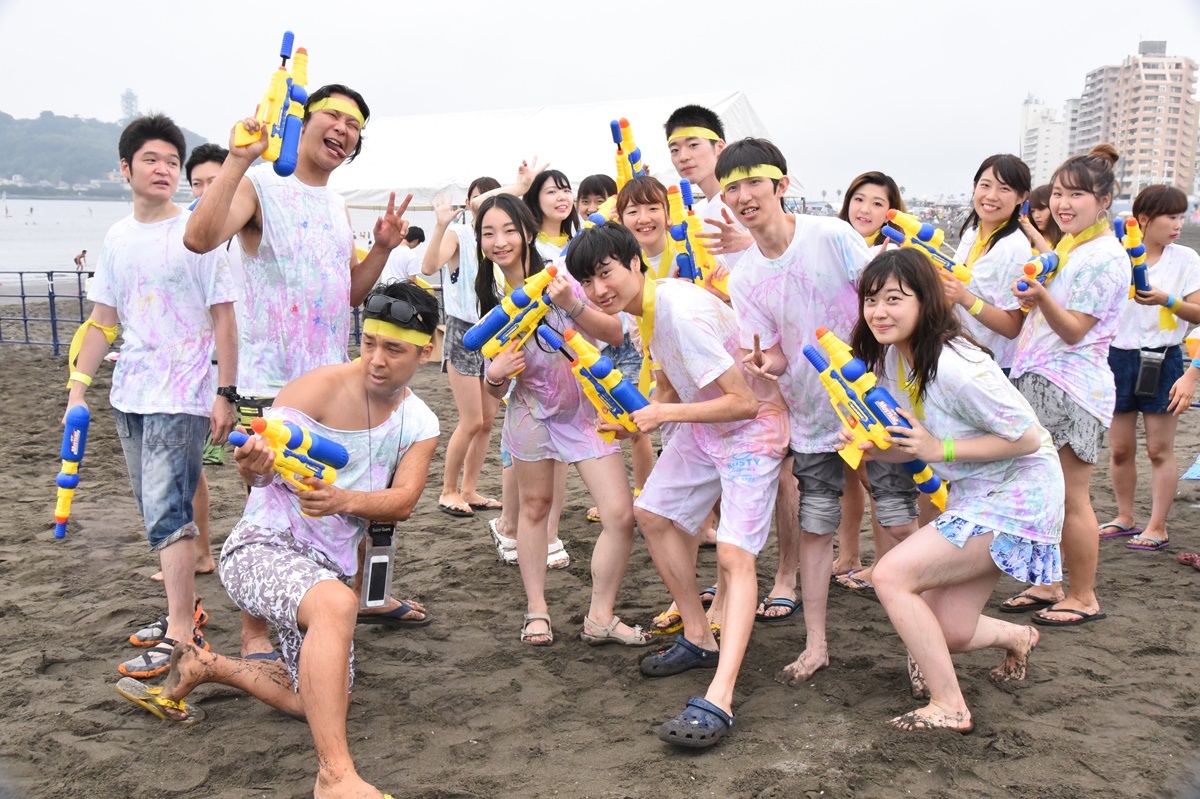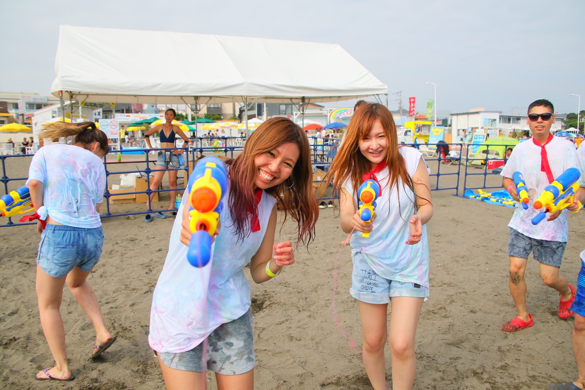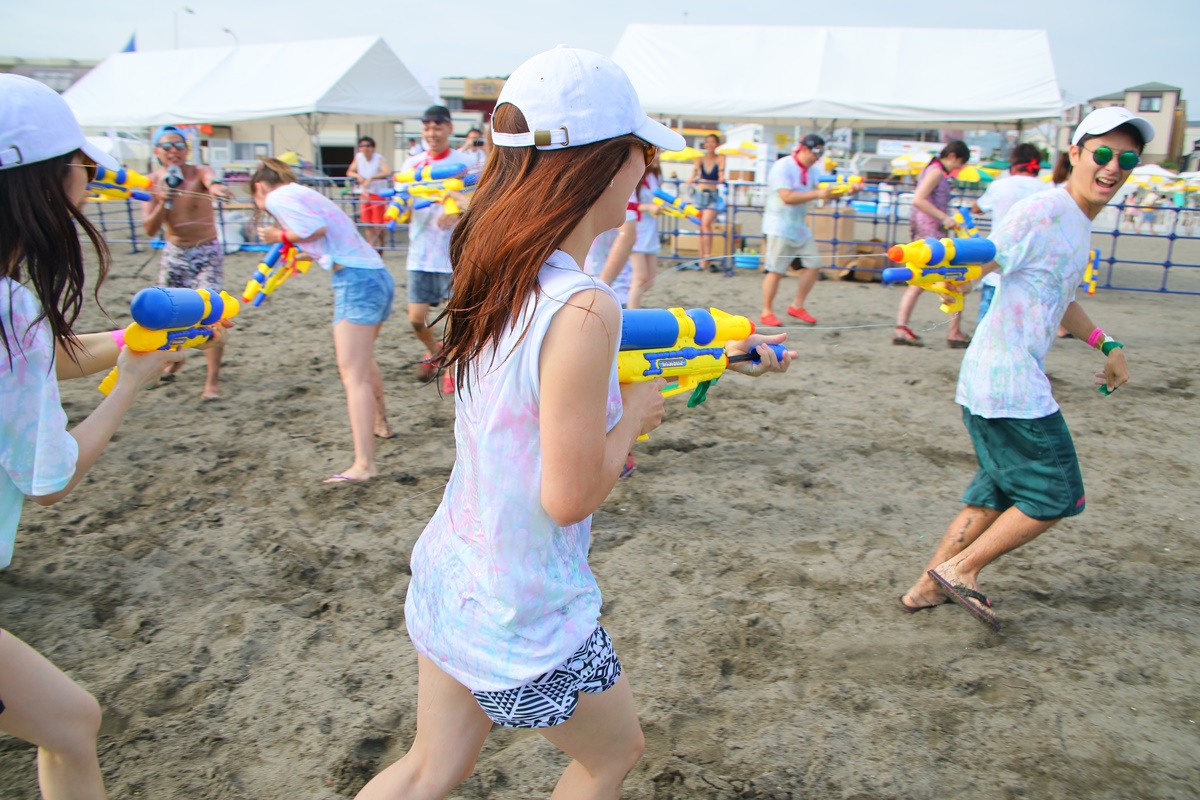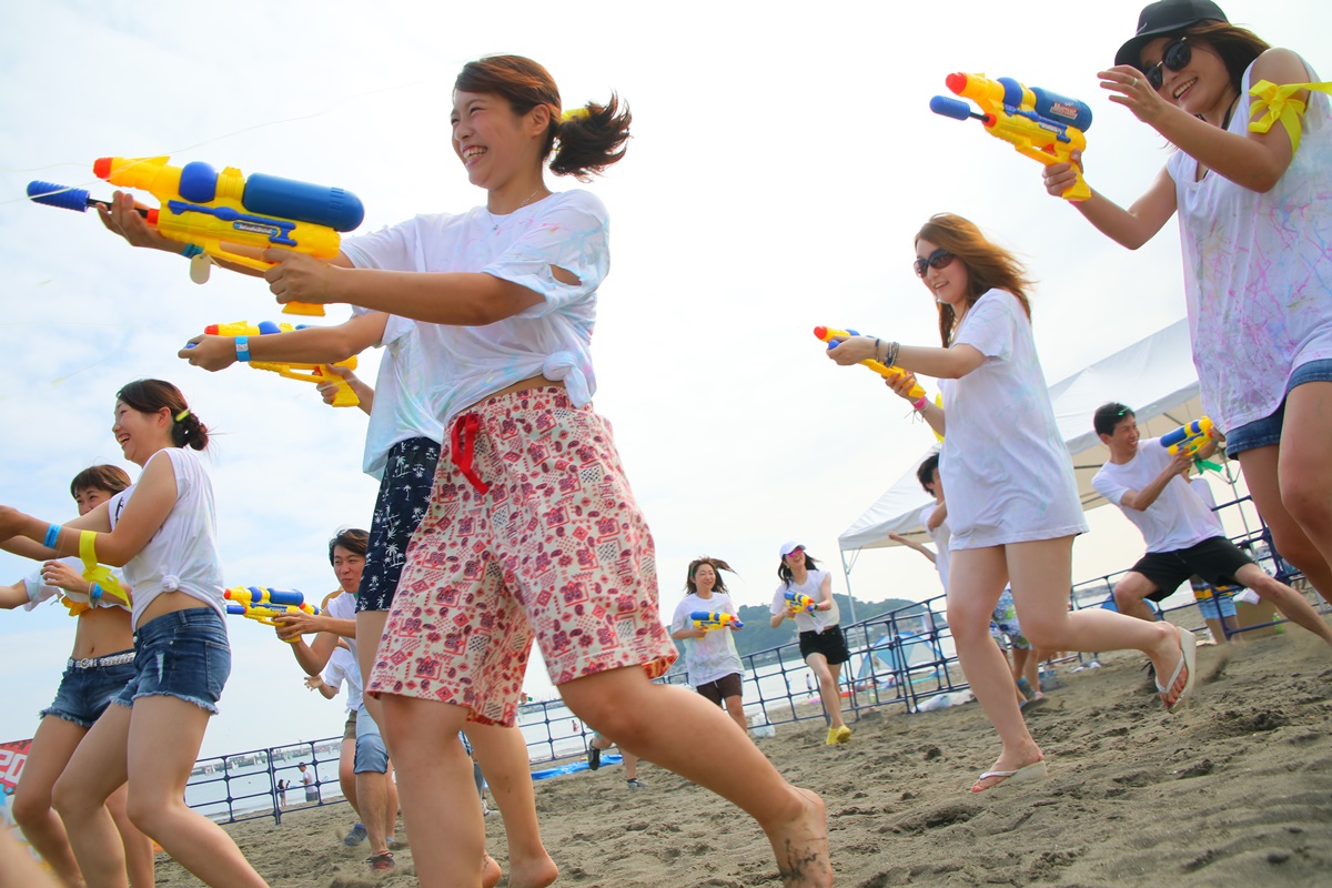 特殊なカラーインクを込めた水鉄砲を撃ち合う、カラーシューティングイベント「COLOR GUN(カラーガン)」。一昨年の開催からパワーアップし、2017年は、目の前に江ノ島が見える鎌倉・腰越海岸で3日間の開催となりました。