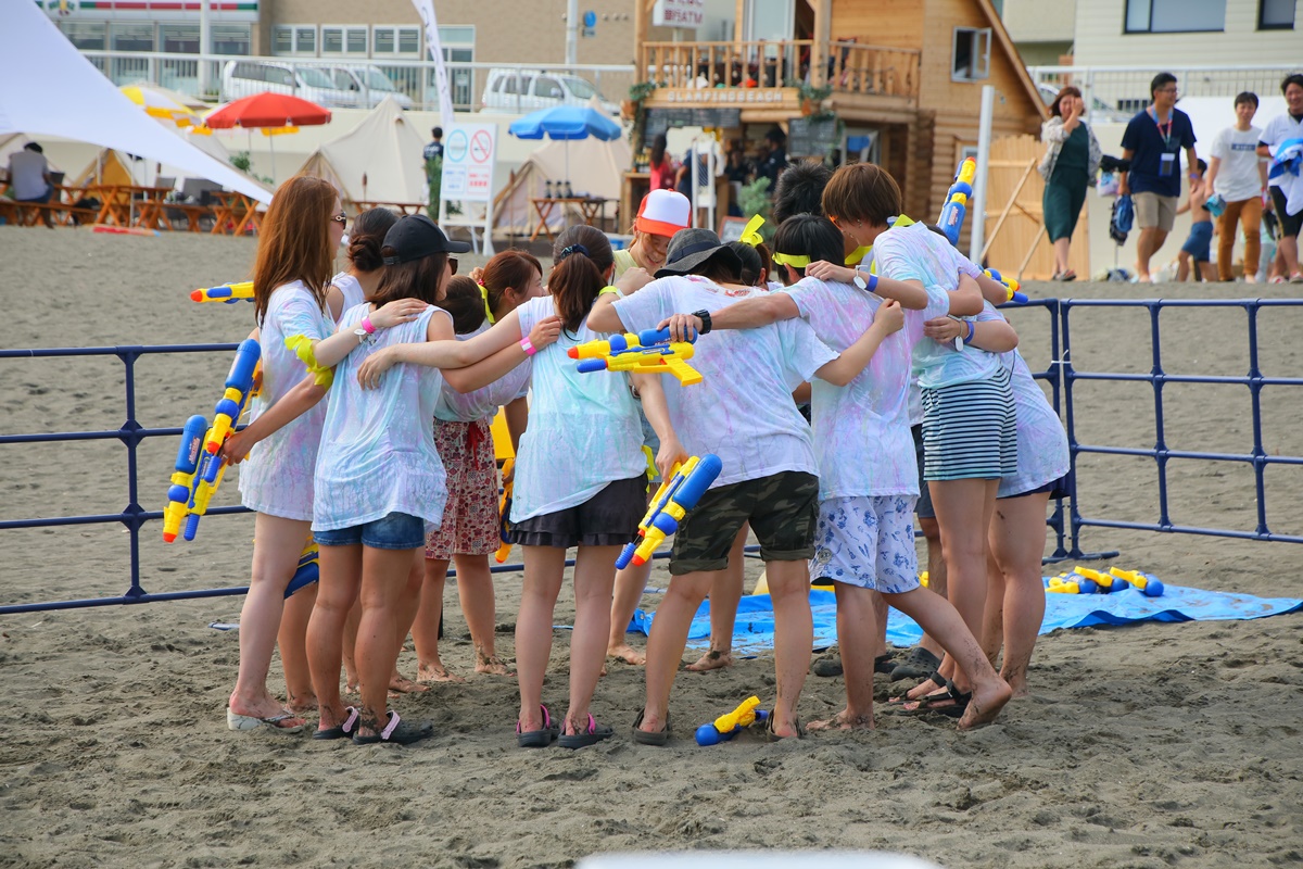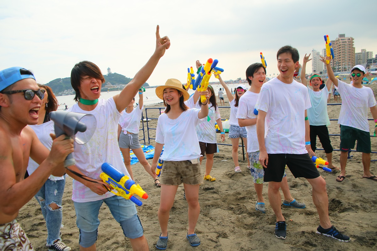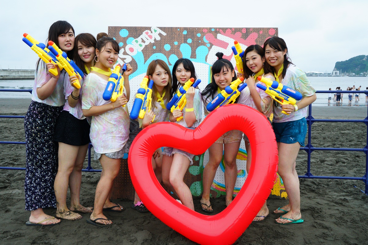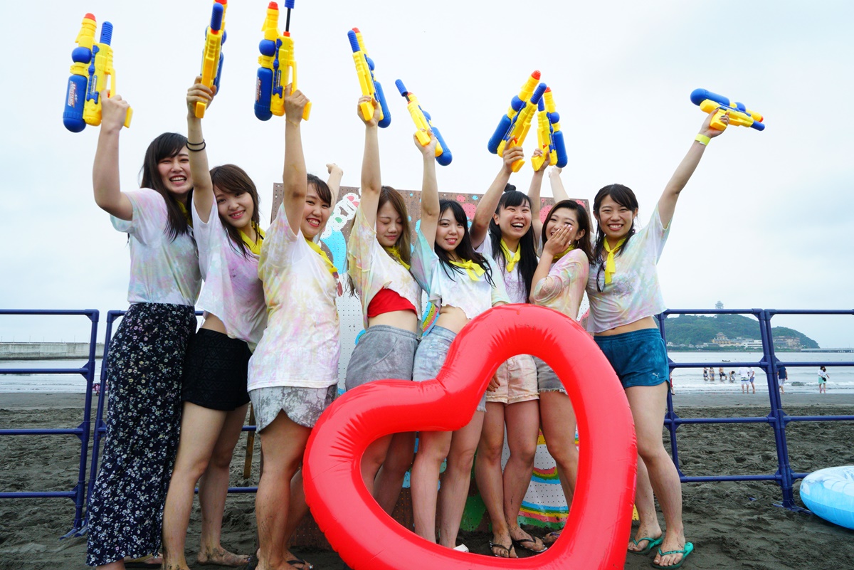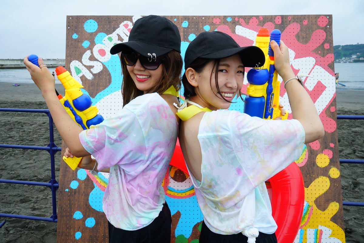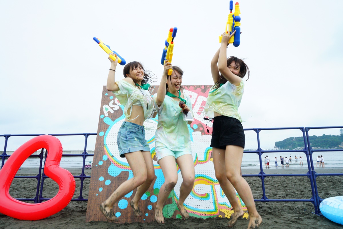 特殊なカラーインクを込めた水鉄砲を撃ち合う、カラーシューティングイベント「COLOR GUN(カラーガン)」。一昨年の開催からパワーアップし、2017年は、目の前に江ノ島が見える鎌倉・腰越海岸で3日間の開催となりました。