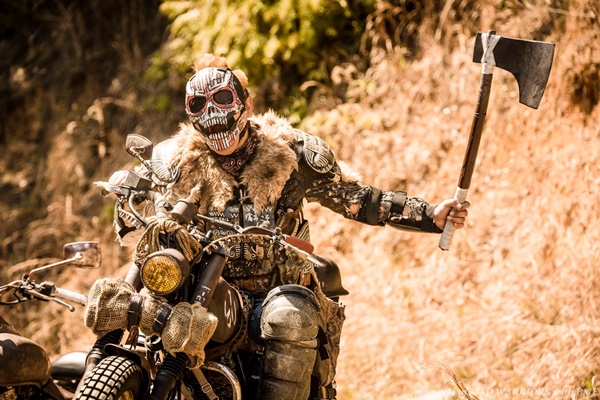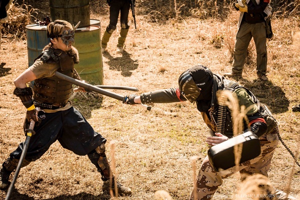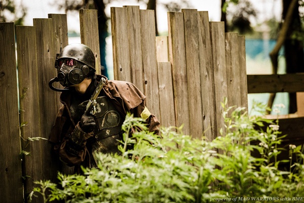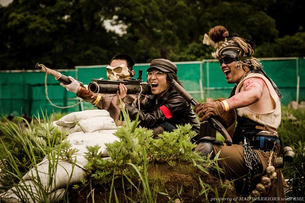 その後上京し、恩師でもありサバゲー好きな3DCG映像監督「笹原和也」氏(CAT SHIT ONE等を制作)の貸切サバゲーに通い、クリエイティブな方々と遊ぶようになりました。その前からゲームや映画などの影響で「世紀末衣装」を作っていたのですが、その貸切サバゲーで思い切って着てプレイをしたら思いのほか楽しくなり、そうしたなかで仲間が増えて、今の「MADサバ」開催に至ります。