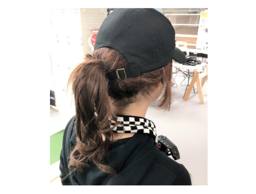 また帽子のツバを前にすることで高位置でのポニーテールが出来ます(^^♪