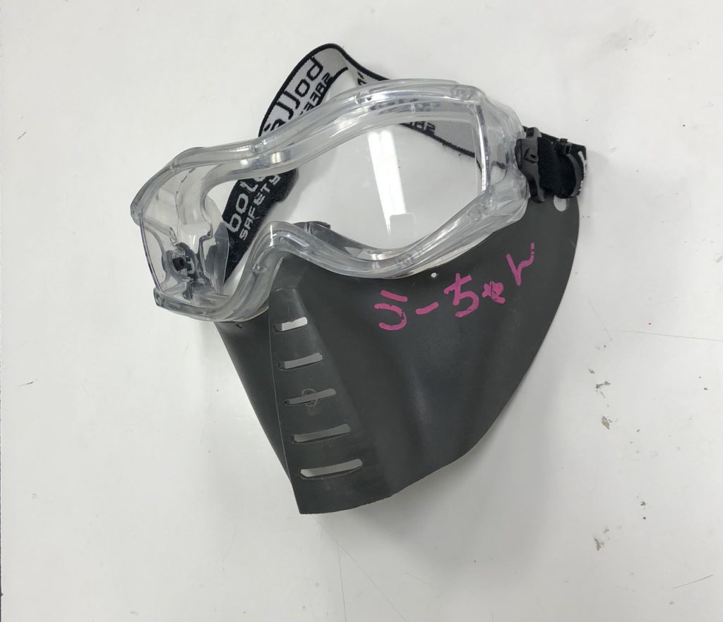 それを防ぐために、顔全面を覆うマスクや、目元保護用ゴーグル+口元を覆う硬質なマスクをしっかり使っていただきたいです!