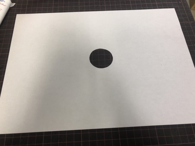 Gボンドが固まって無駄な部分を切り落としたら、今度は円形の型紙を取ります。
