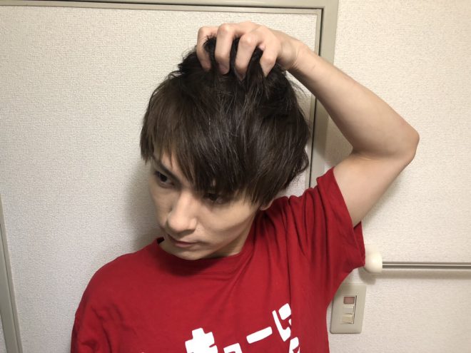 ここからワックスを塗りたくって髪型を作っていきますが、それなりの分量が必要になります。