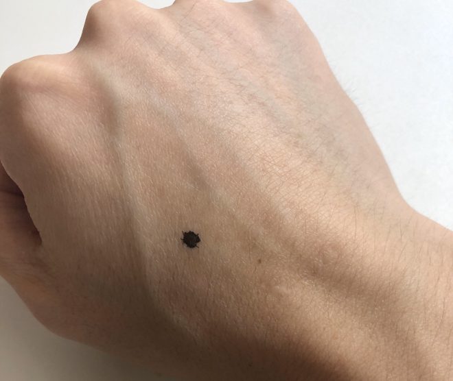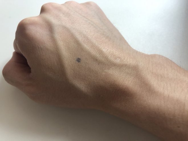 今回は色の差が分かるようにペンで付けた跡がある右手の甲に塗っていきます。