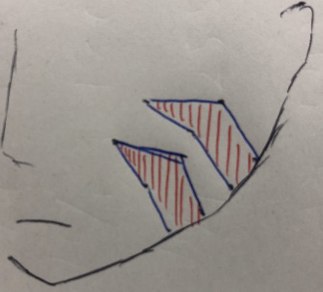 自分でこの傷跡を描くとなると結構コツがいりますが、忠臣の傷跡はカクカクしているので描きやすい方ではあります。