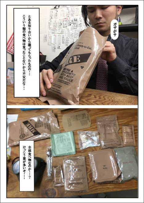 今回テーマにしたのはアメリカ軍レーション(軍用食)MREです。